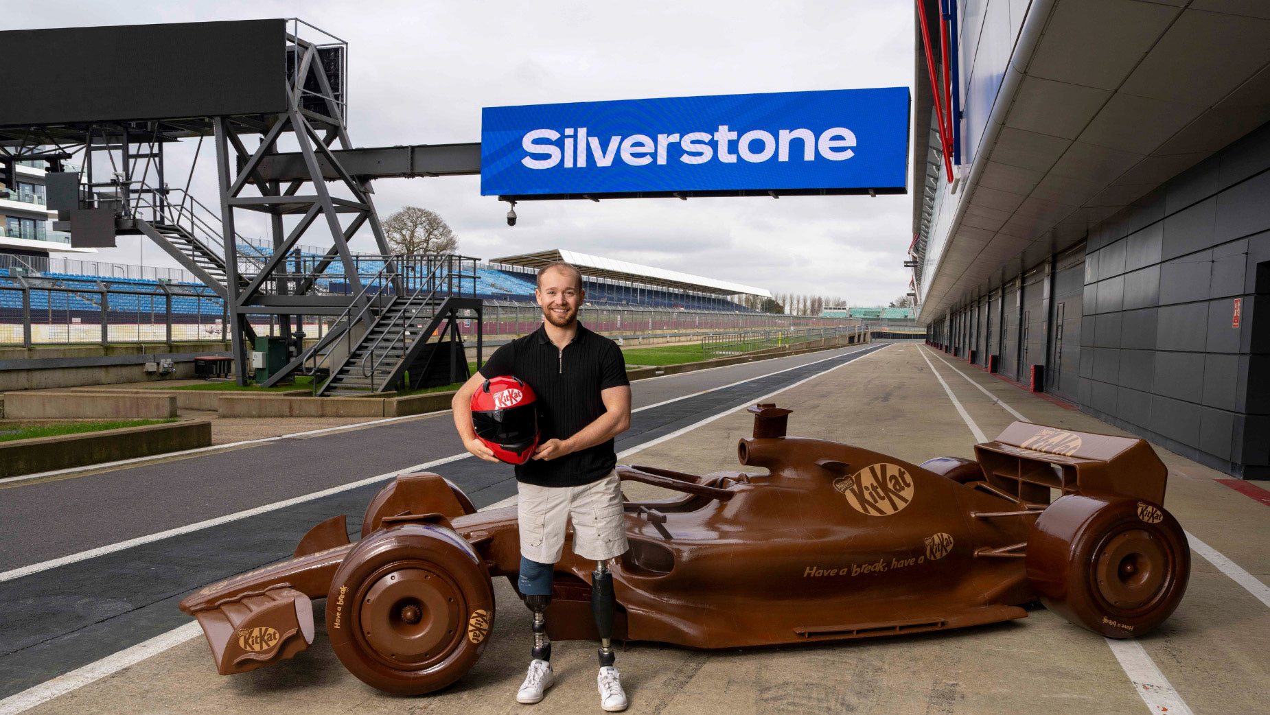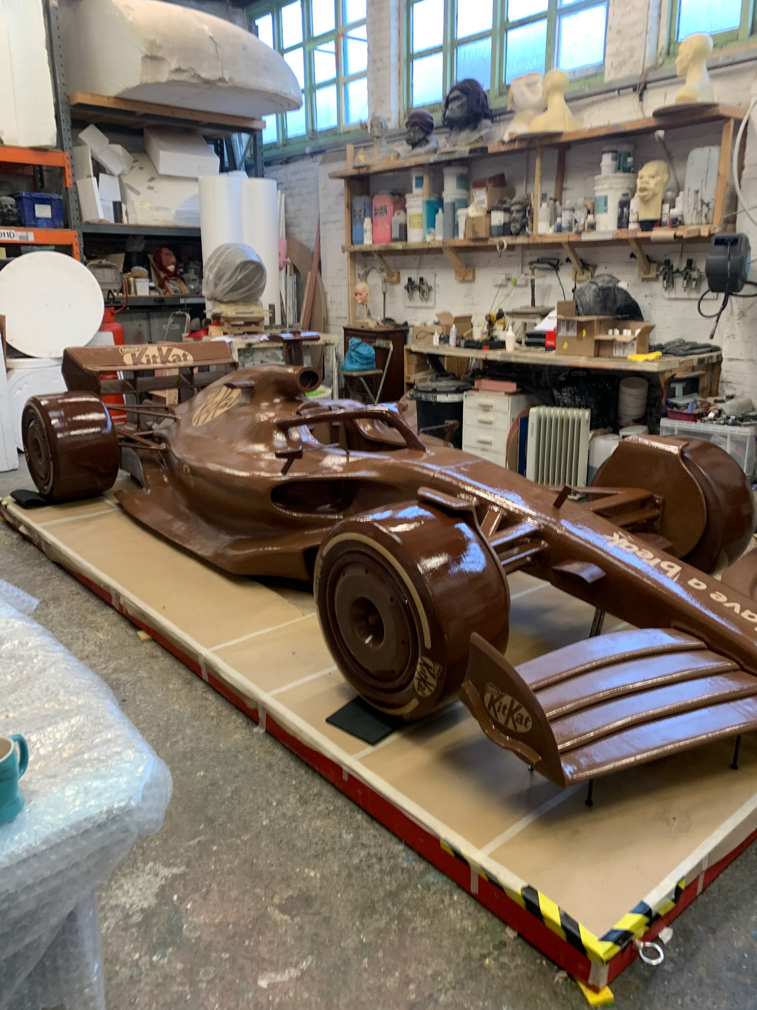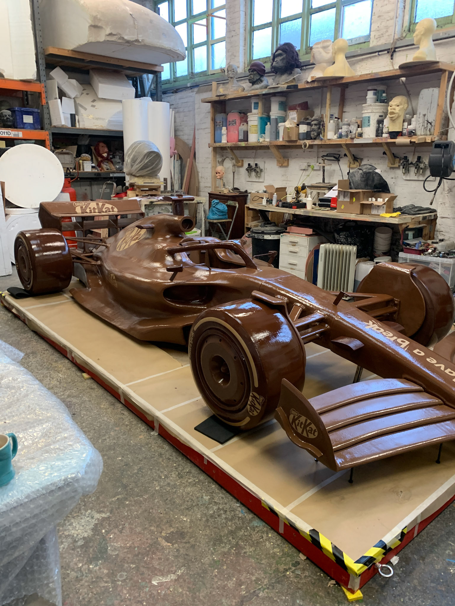 I worked on the installation and touring of a full‑size Formula 1 car made from chocolate for KitKats F1 partnership. showcased at events including Silverstone and York. The sculpture is five metres long, two metres wide, weighs around 350 kg.